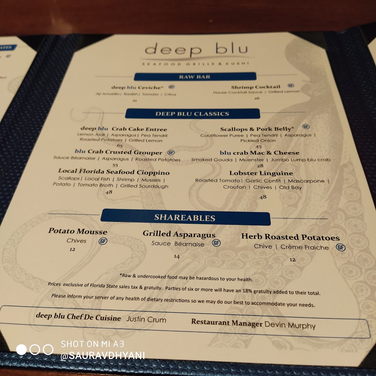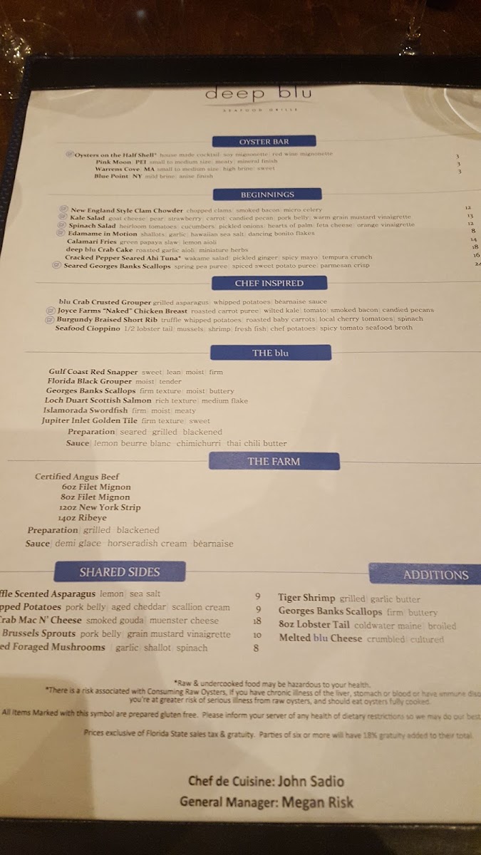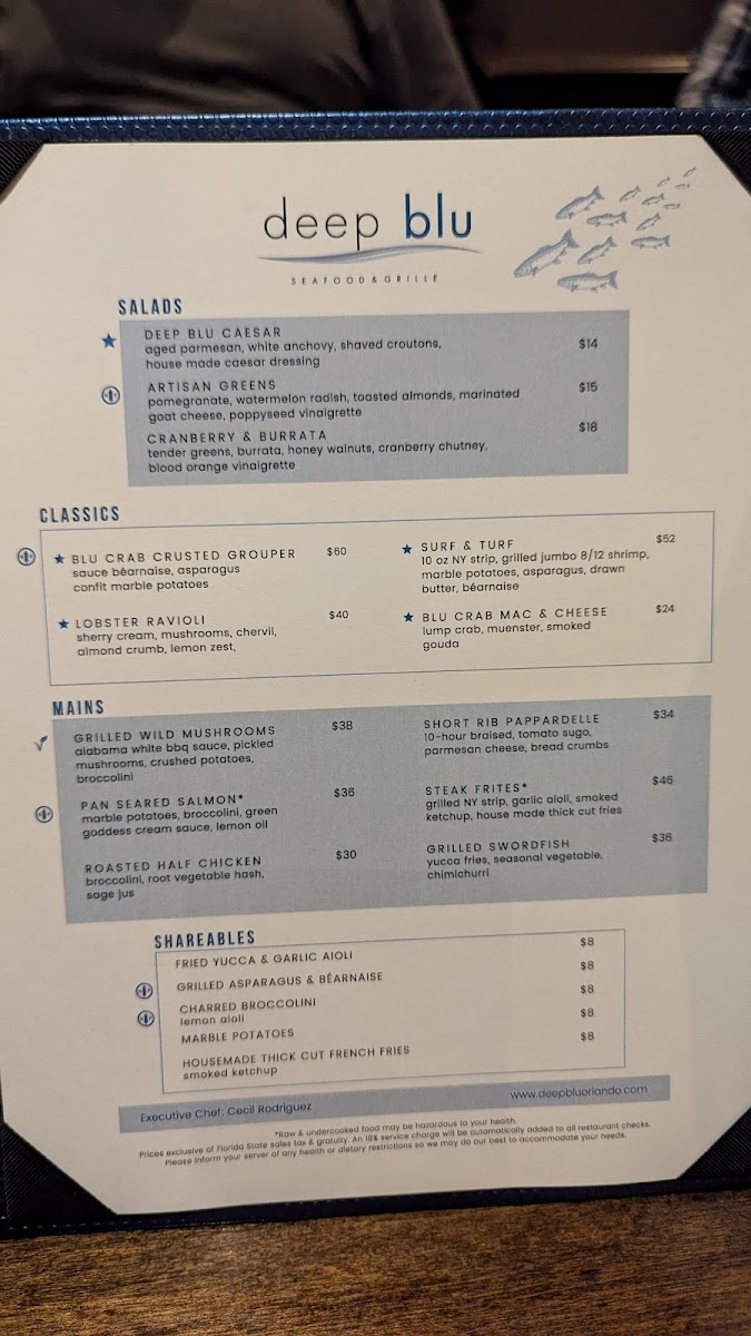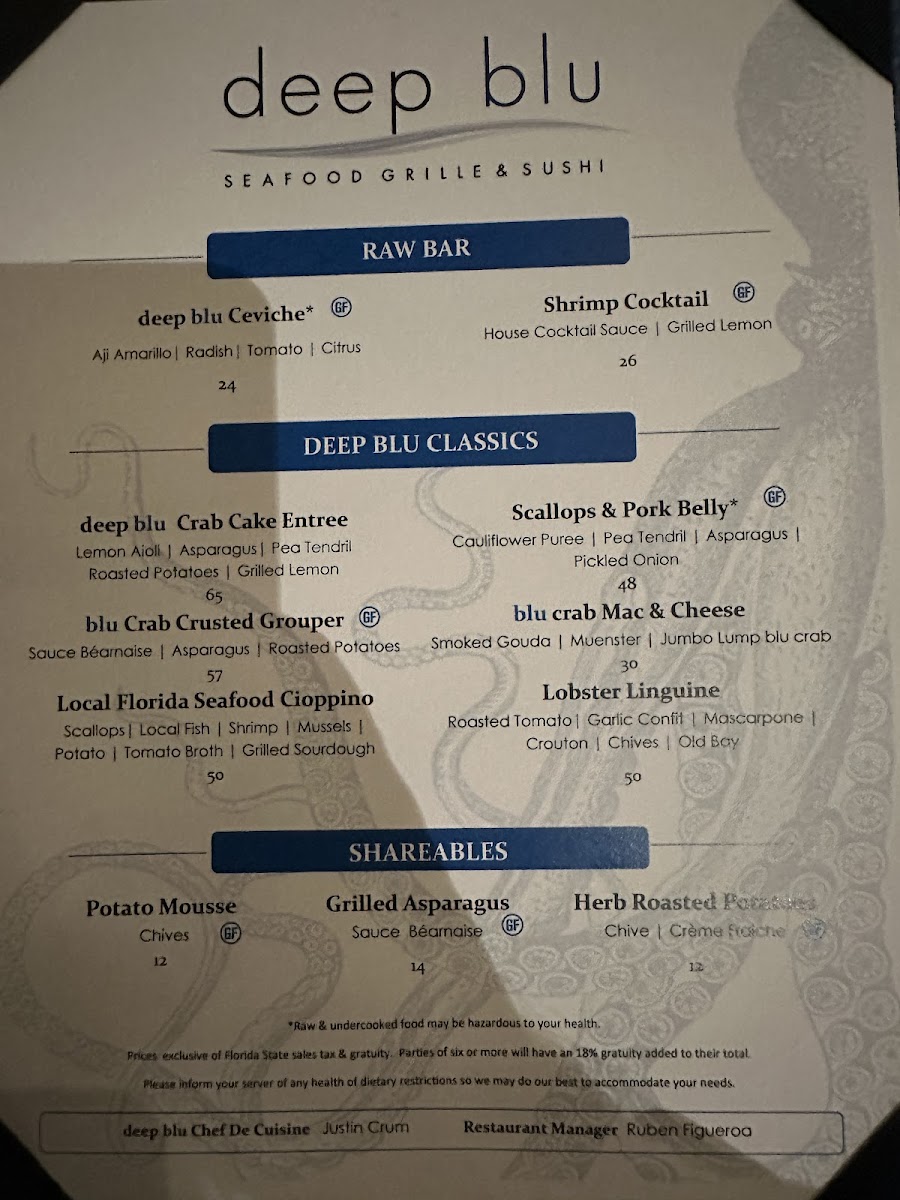 Introducing the Menu at Deep Blu Seafood Grille